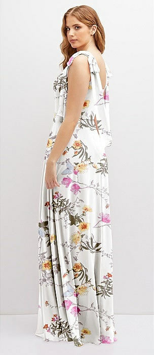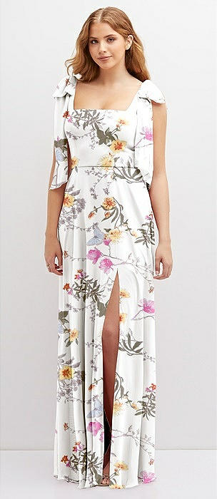 Bow Shoulder Square Neck Chiffon Maxi Dress in butterfly botanica ivory