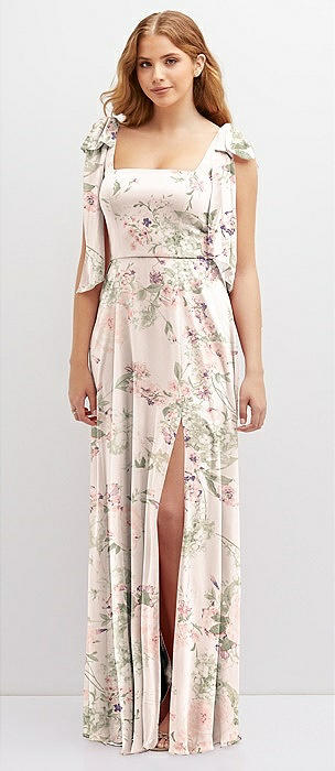 Bow Shoulder Square Neck Chiffon Maxi Dress in blush garden