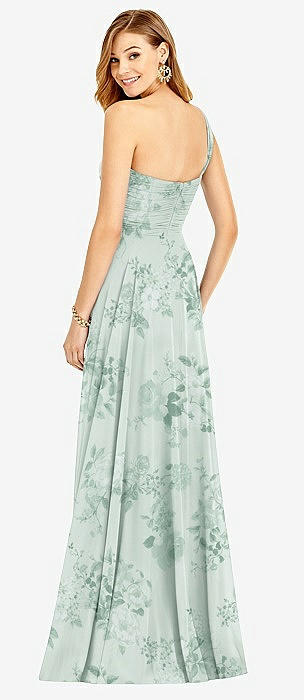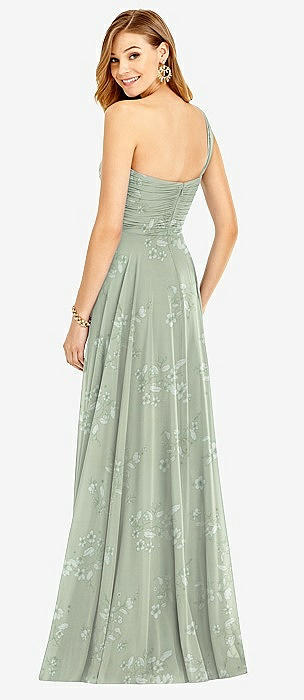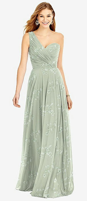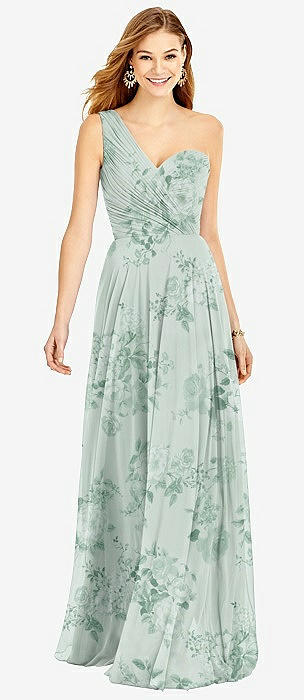 One-Shoulder Draped Chiffon Maxi Dress - Dani in mint green floral