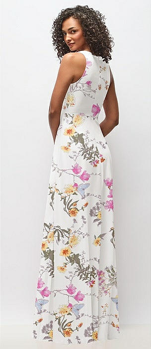 Deep V-Neck Chiffon Maxi Dress in butterfly botanica ivory