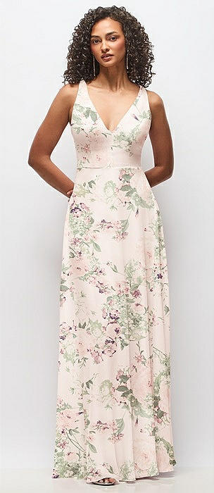 Deep V-Neck Chiffon Maxi Dress in vintage primrose sage