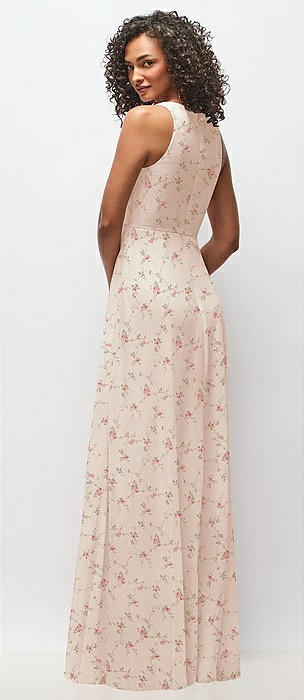 Deep V-Neck Chiffon Maxi Dress in coquette floral print