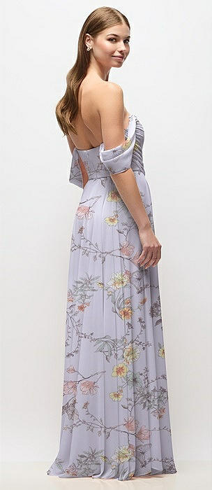 Chiffon Corset Maxi Dress with Removable Off-the-Shoulder Swags in butterfly botanica silver dove