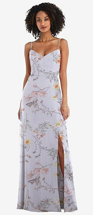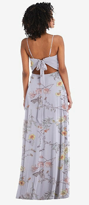 Tie-Back Cutout Maxi Dress with Front Slit in butterfly botanica silver dove