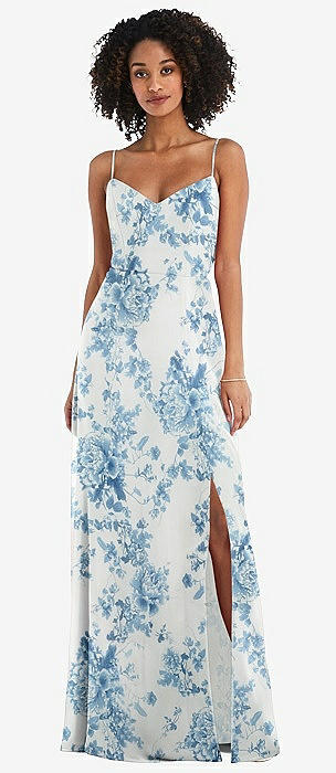 Tie-Back Cutout Maxi Dress with Front Slit in cottage rose dusk blue