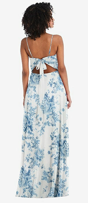 Tie-Back Cutout Maxi Dress with Front Slit in bleu garden