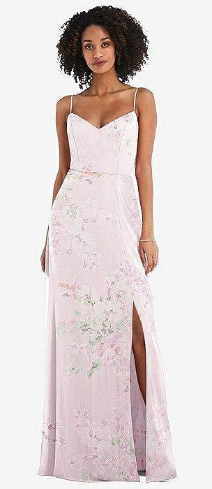 Tie-Back Cutout Maxi Dress with Front Slit in blush garden