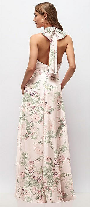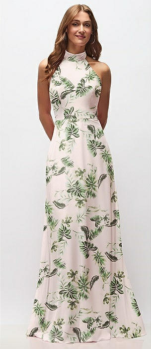 High Neck Halter Backless Maxi Dress in blush garden