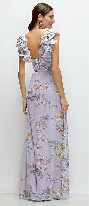 Dramatic Ruffle Edge Strap Chiffon Maxi Dress in butterfly botanica silver dove