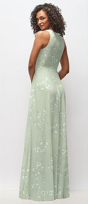 Deep V-Neck Chiffon Maxi Dress in vintage primrose sage