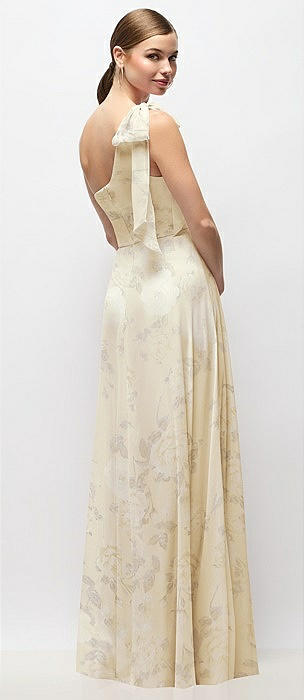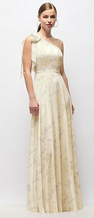 Draped One-Shoulder Maxi Dress with Scarf Bow in butter yellow floral