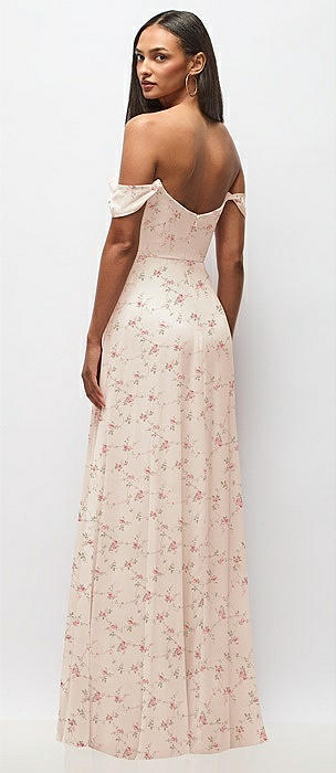 Off-the-Shoulder Basque Neck Maxi Dress with Flounce Sleeves in coquette floral print
