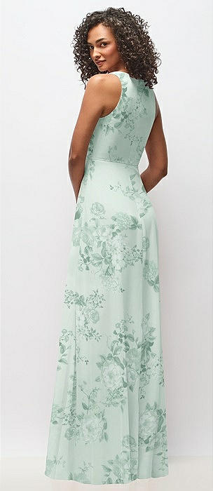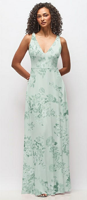 Deep V-Neck Chiffon Maxi Dress in mint green floral