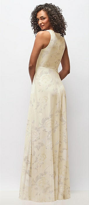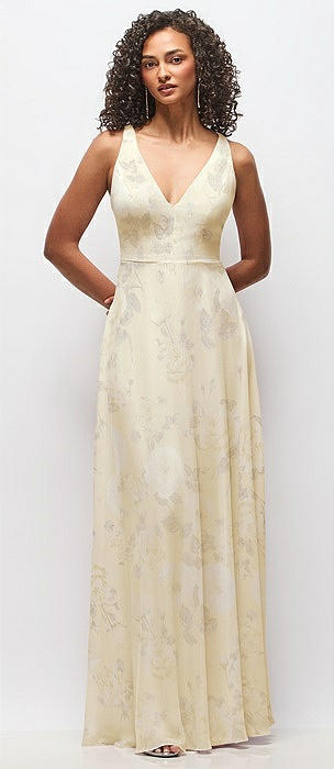 Deep V-Neck Chiffon Maxi Dress in butter yellow floral