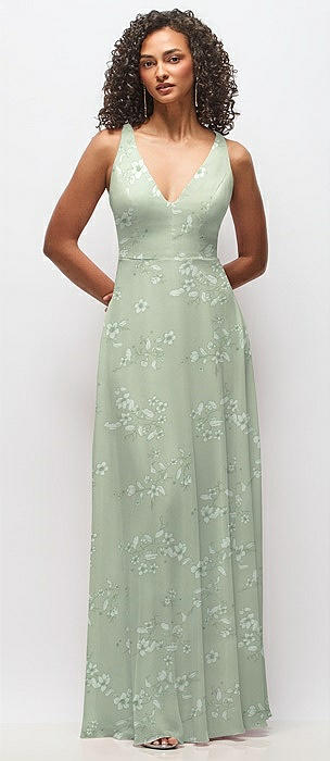Deep V-Neck Chiffon Maxi Dress in vintage primrose sage