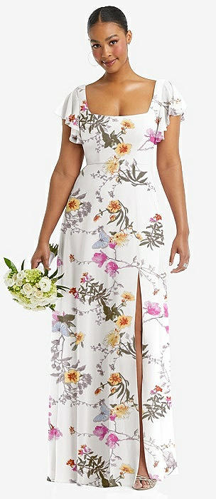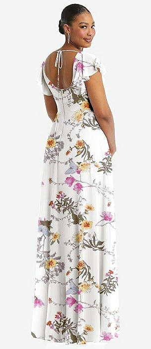 Flutter Sleeve Scoop Open-Back Chiffon Maxi Dress in butterfly botanica silver dove