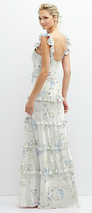 Tiered Chiffon Maxi A-line Dress with Convertible Ruffle Straps in butterfly botanica silver dove