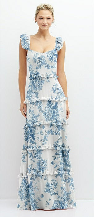 Tiered Chiffon Maxi A-line Dress with Convertible Ruffle Straps in cottage rose dusk blue