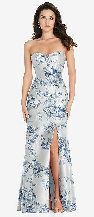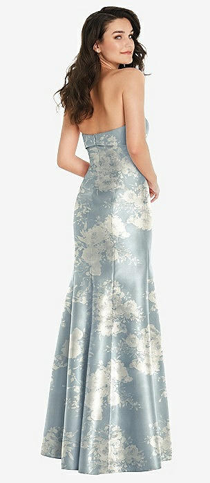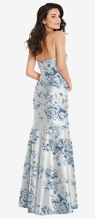 Bow Cuff Strapless Floral Princess Waist Trumpet Gown in porcelain blue seraphina floral