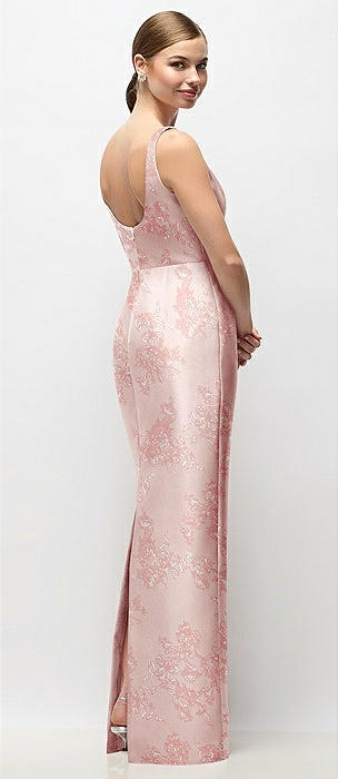 Strapless Cuff Floral Satin Maxi Dress with Column Skirt & Back Bow in butterfly botanica pink sand