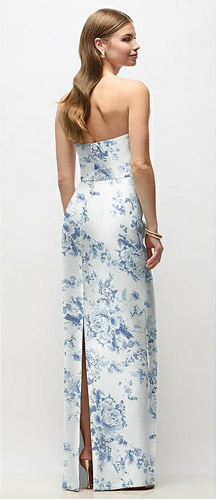 Strapless Esme Floral Satin Column Dress with Back Slit in esme floral