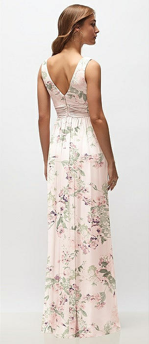 Sleeveless Draped Chiffon Maxi Dress with Front Slit in coquette floral print