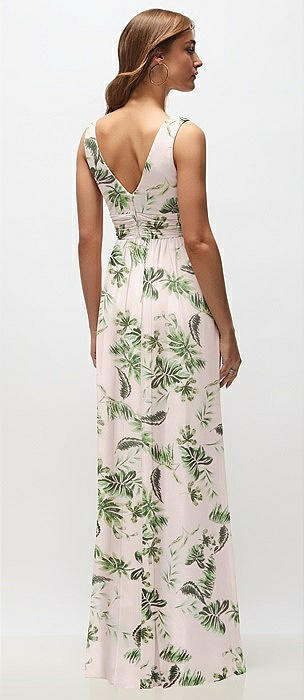 Sleeveless Draped Chiffon Maxi Dress with Front Slit in palm beach print
