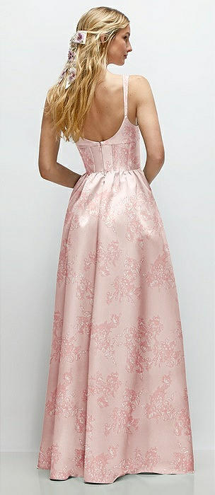Floral Strapless Satin Drop Waist Gown with Full Skirt in butterfly botanica pink sand