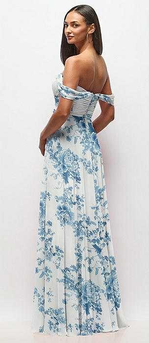 Off-the-Shoulder Draped Chiffon Maxi Dress in cottage rose dusk blue