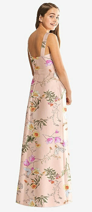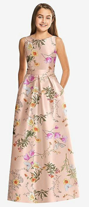 Floral Bateau Neck Maxi Junior Bridesmaid Dress with Pockets in butterfly botanica pink sand