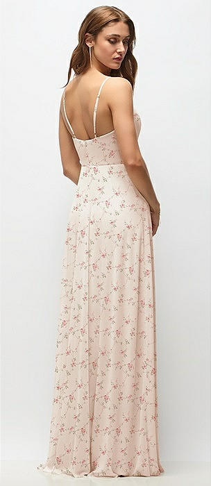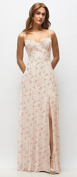 Wrap Bodice Floral Chiffon Maxi Dress with Adjustable Spaghetti Straps in coquette floral print
