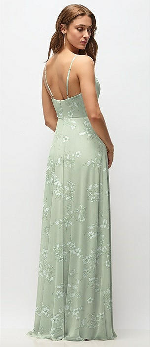 Wrap Bodice Floral Chiffon Maxi Dress with Adjustable Spaghetti Straps in mint green floral