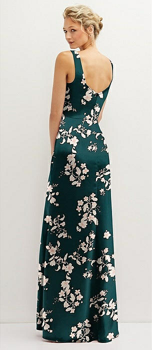 Floral Square-Neck Satin A-line Maxi Dress with Front Slit in vintage primrose evergreen