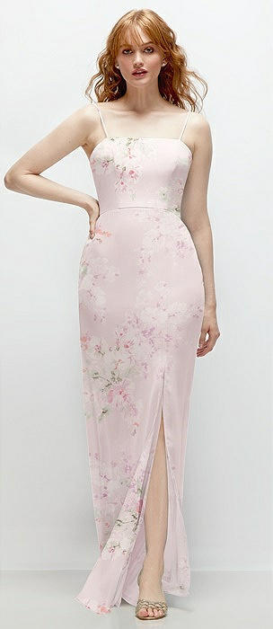 Tie-Back Cutout Trumpet Gown with Front Slit in watercolor print