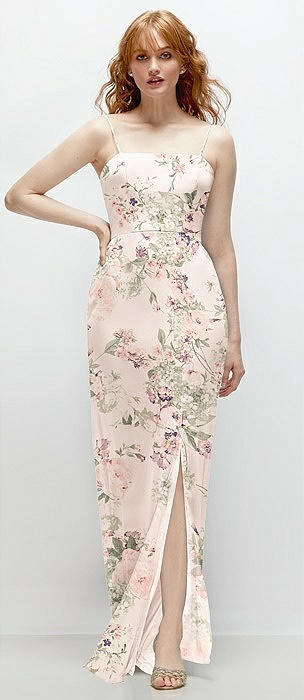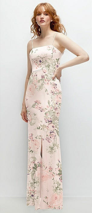Tie-Back Cutout Trumpet Gown with Front Slit in coquette floral print