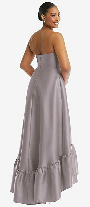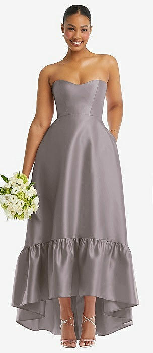 Strapless Deep Ruffle Hem Satin High Low Dress with Pockets in cashmere gray