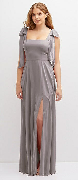 Bow Shoulder Square Neck Chiffon Maxi Dress in cashmere gray