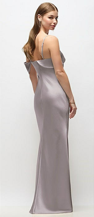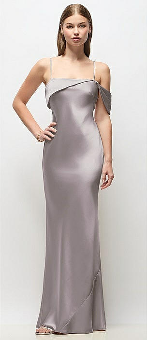 Asymmetrical Cuff Neck Stretch Satin Bias Maxi Dress with Adjustable Spaghetti Straps in cashmere gray