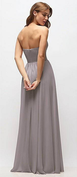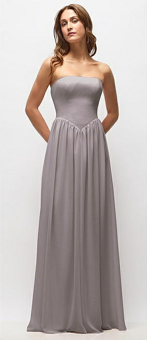 Strapless Basque Drop Waist Chiffon Maxi Dress with Shirred Skirt in cashmere gray