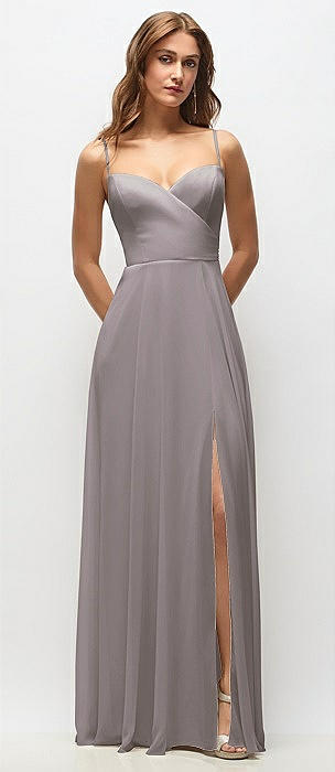 Wrap Bodice Chiffon Maxi Dress with Adjustable Spaghetti Straps in cashmere gray