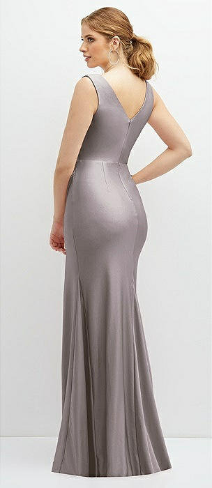 Deep V-Neck Stretch Satin Mermaid Dress with Slight Train in cashmere gray