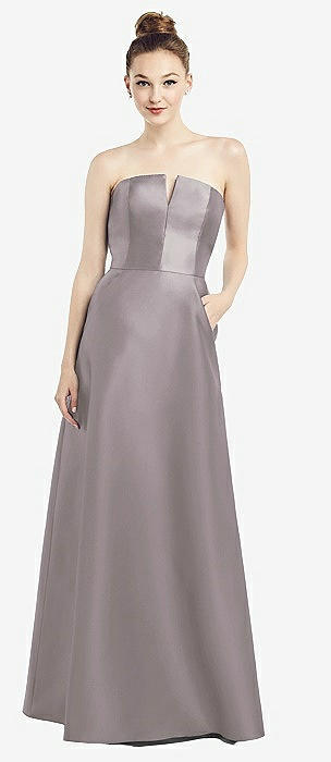 Strapless Notch Satin Gown with Pockets in cashmere gray