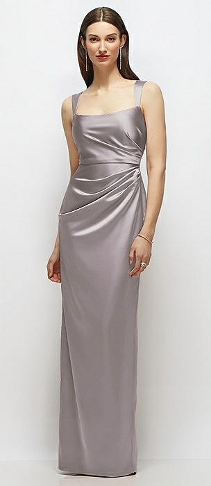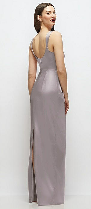 Scoop Neck Draped Column Stretch Satin Maxi Dress in cashmere gray
