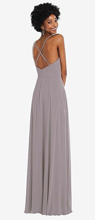 Faux Wrap Criss Cross Back Maxi Dress with Adjustable Straps in cashmere gray