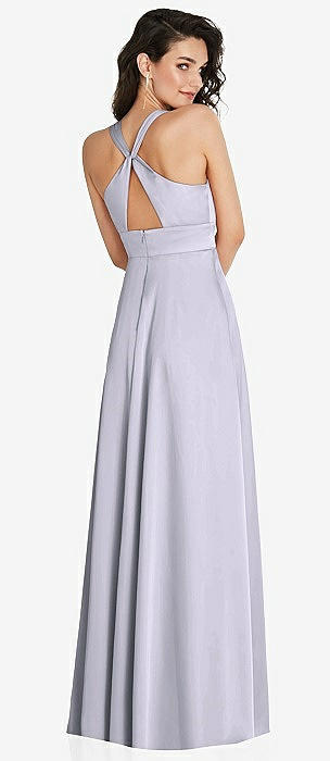 Tie-Back Cutout Maxi Dress with Front Slit in cashmere gray