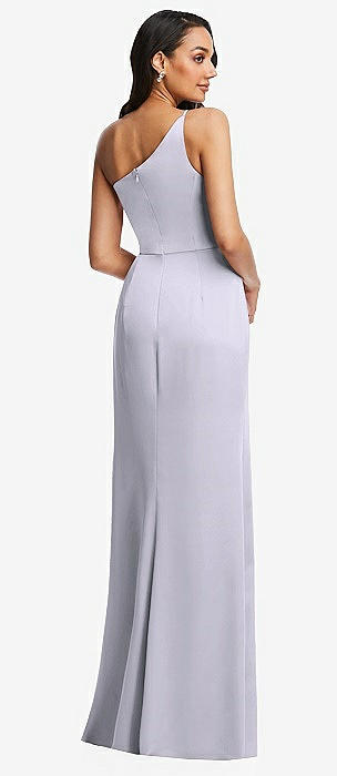 One-Shoulder Draped Skirt Satin Trumpet Gown in silver dove