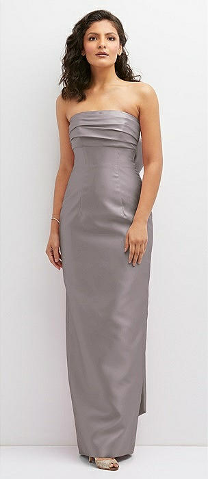 Strapless Draped Bodice Column Dress with Oversized Bow in cashmere gray