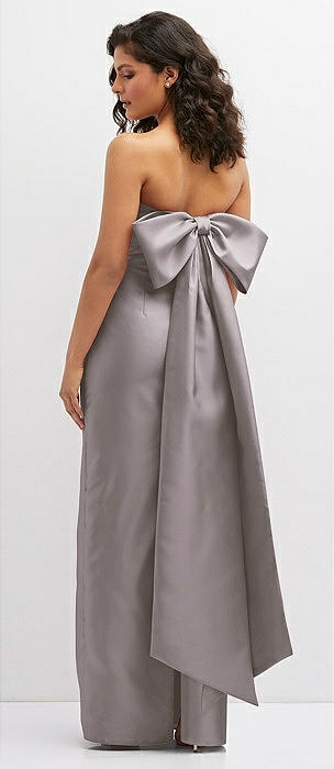 Strapless Satin Column Mini Dress with Oversized Bow in silver dove