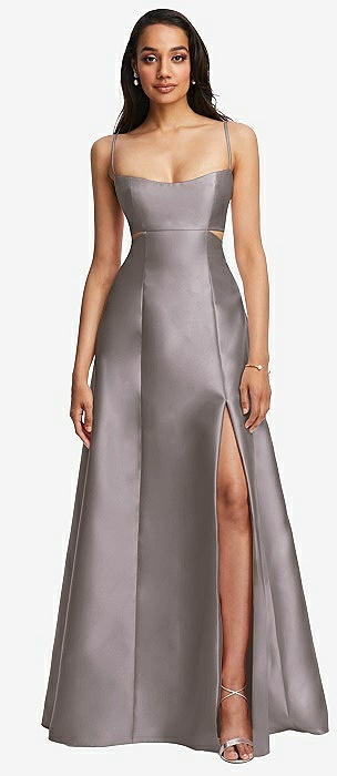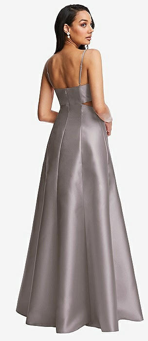 Open Neckline Cutout Satin Twill A-Line Gown with Pockets in cashmere gray