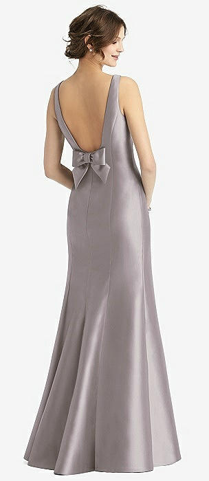 Sleeveless Satin Trumpet Gown with Bow at Open-Back in cashmere gray